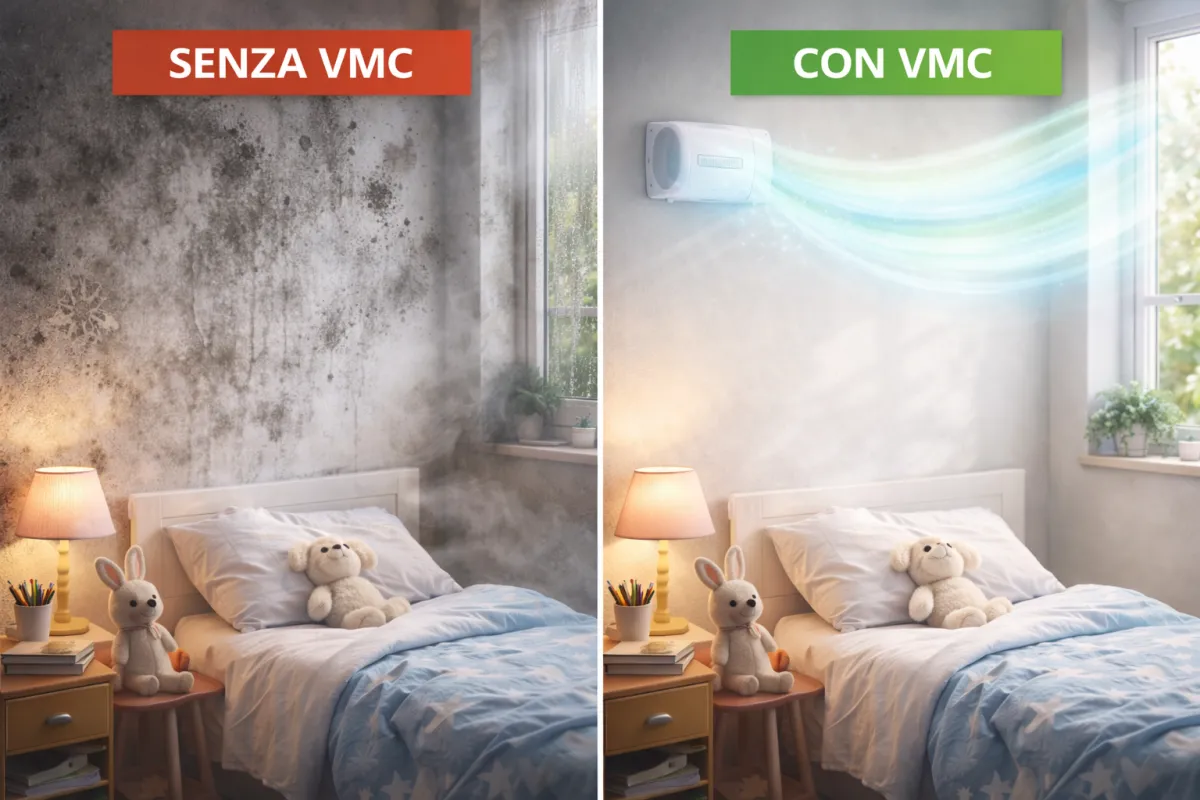 Queste operazioni migliorano la classe energetica, ma sigillano l’abitazione, riducendo drasticamente il ricambio naturale dell’aria.