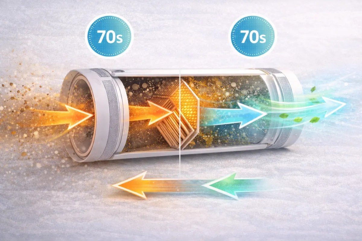 Cosa succede: L’aria calda interna scalda il "cuore" di ceramica mentre esce.